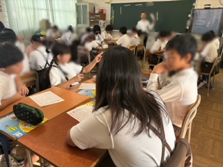 阪急電鉄の出前授業です。前半は、阪急電鉄の歴史、功績者の小林一三などのこと、後半は、キャリア教育です。