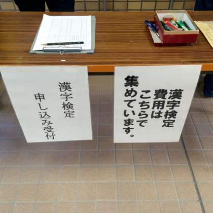今朝もPTA役員の皆様のご協力で、淀中ブロックで開催する、漢字能力検定の受付をしています。今日が最終日です。