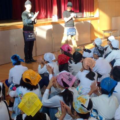 最初は、一風堂の皆様に自己紹介していただき、気持ちが解れてきました。保護者のボランティアの皆様にもお手伝いにお越しいただきました。