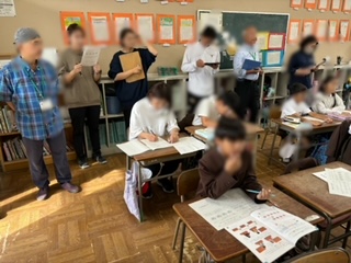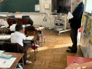 今日の授業は、本校の教員、教育センターの指導担当(写真中、下の2名)が見ました