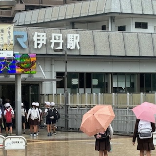 雨が降ってきたので早目に帰校することとしました。小雨の中、歩いて伊丹駅に着きました。予定より50分くらい早い電車に乗ります。