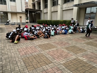 予定より早く2時30分頃に帰校しました。この後、教室で伊丹スカイパークで描いた飛行機に色を塗っていきます。