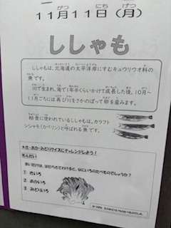今日の給食 ししゃも
