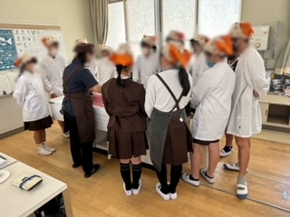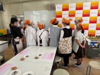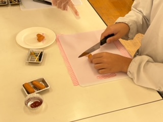 日本ハムの方に教えていただき、ウインナーを切って形にしていきます