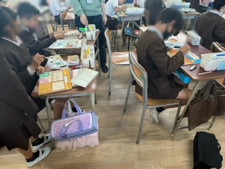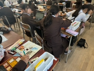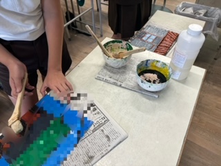 5年生の作品作りは大詰めの段階ですね。ニスを塗って仕上げます。(写真下)