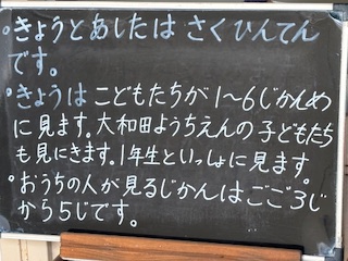 ○児童鑑賞は1時間目から6時間目です。大和田幼稚園に園児のみなさんが1年生といっしょに見ます。