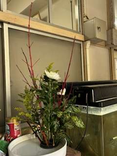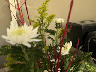 生涯学習の皆様がいけてくださったお花が校長室前に飾られていました。秋の花、菊も光っています。