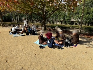 オリックス劇場での劇鑑賞が終わり、靭(うつぼ)公園へ行きました。ここでお弁当を食べます。