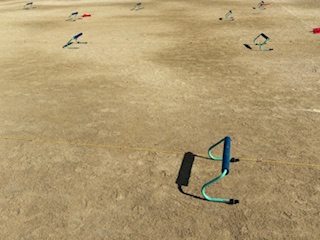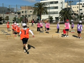 小さいハードルを歩数を考えて走っています