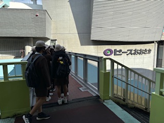 森ノ宮駅で降りて、ピースおおさかに着きました。10時から班で見学していきます。