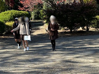 大阪城内を班でまわって戦跡を探していきます