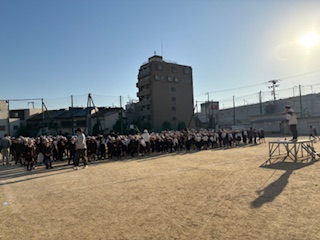 児童朝会では、あいさつのあと、校長から師走になったこと、手洗いの大切さについての話がありました