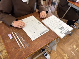 問題用紙、解答用紙が配られています