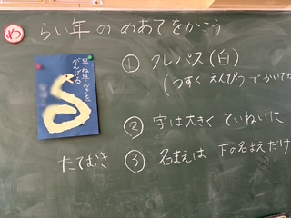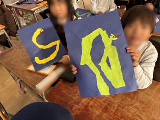 来年は巳年ですね。へびの貼り絵を作りました。そこに来年のめあてを書いていきます。