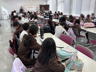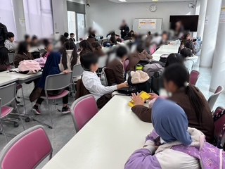 展示見学の後、お弁当となります。予約していた館内の多目的室で食べます。