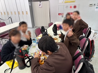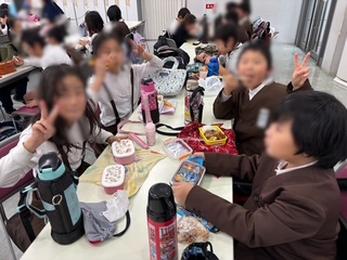班ごとに座って食べます