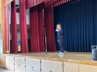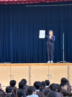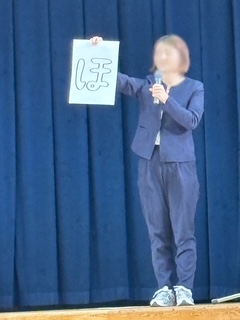 ○生活指導担当の教員が、はひふへほの文字を見せて、はは、早寝早起き朝ごはん。ひは、火の用心。ほは、2学期にがんばった自分をほめましょう、という話をしました。