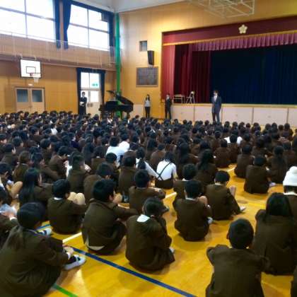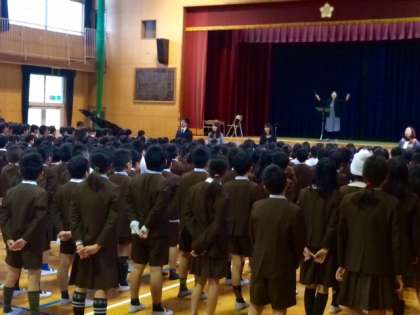 新年のあいさつを交わしたあと、校長先生から「一年の計は元旦にあり」今年の目標をたてるにあたって、箱根駅伝2年連続優勝校の青山学院大学陸上部 原晋(はら すすむ)監督の新聞でのインタビューの記事を例に、親や先生に言われるのでなく、自分で目標を持つことが大切ですと話されました。また、かけがえのない命、尊厳について、自分の命、友達の命を大切にすること、思いやりを持つこと、いじめのない学校にしましょうと話をされました。