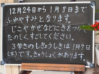 ○3学期の始業式は、1月9日(木曜日)です。給食があります。