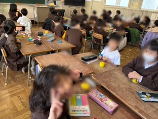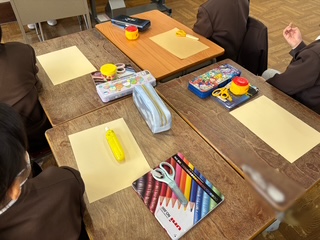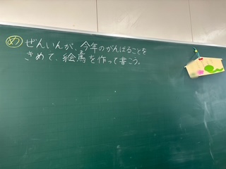 今年がんばりたいことを絵馬風に書いていきます。画用紙が配られています。