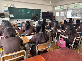 SDGSの項目ごとに調べて、その内容を端末を使って発表しています