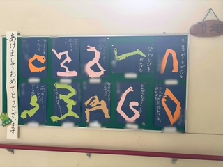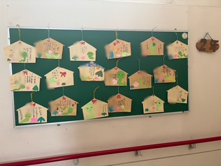 掲示板には今年のめあてが貼られています(写真は1年生、2年生)