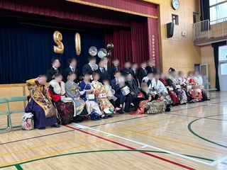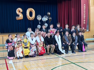 卒業した時の6年生1組、2組、3組ごとに記念写真を撮りました。当時の担任も真ん中にいます。