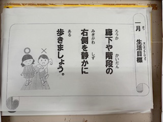 1月の生活目標は、廊下や階段の右側を歩きましょう です