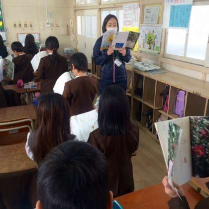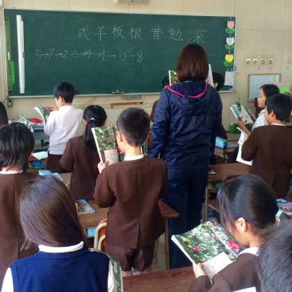 みんなで背すじを伸ばして本読みです。宮浦先生の範唱に続いて、大きな声で教科書を読みます。