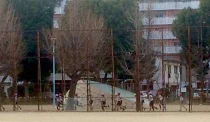 大和田中央公園のグランドの外周を走っています。マラソン大会に向けて体力をつけたいです。