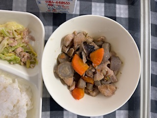 筑前煮がでました。黒豆もあります。