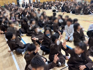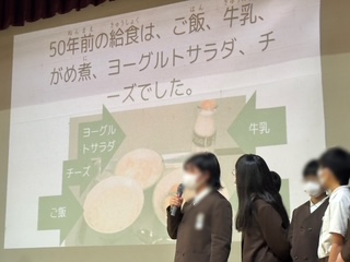 給食委員会の子どもたちが、答えをもとに給食の歴史を伝えていました。