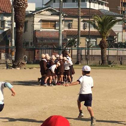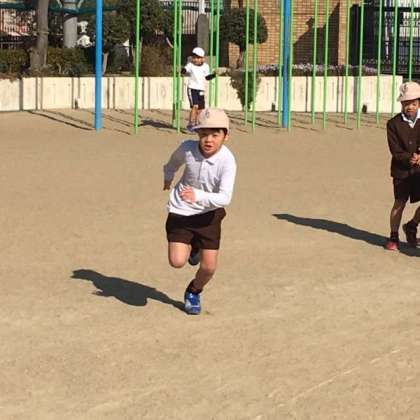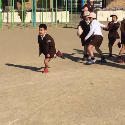 子どもたちは、寒さに負けず運動場がからだを動かしています。2年生はクラス遊びでリレーをしていました。走っている児童も、応援している児童も精一杯の力を出しています。