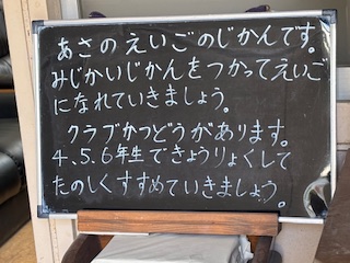 朝の時間に英語に親しむ活動をしています。1年生から行っています。