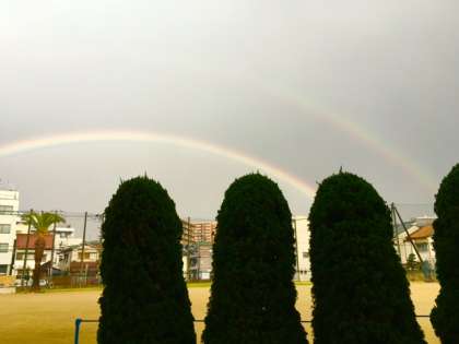 6時間目が始まる頃、大和田小学校の校庭に二重の虹が見えました。