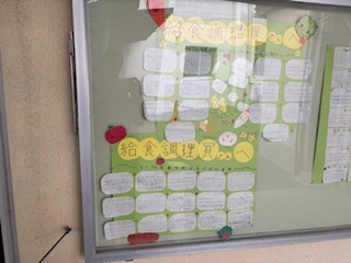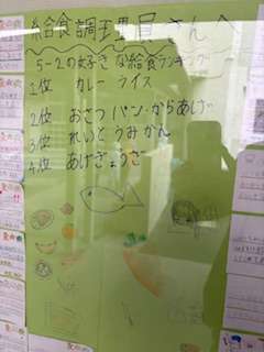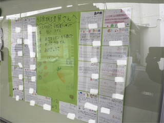 給食室には給食調理員さんへの感謝の手紙がはってあります。いつもありがとうございます。