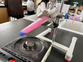 水を温めた時の温度の変化を色であらわす器具を使って実験しました。その結果をもとに考えています。