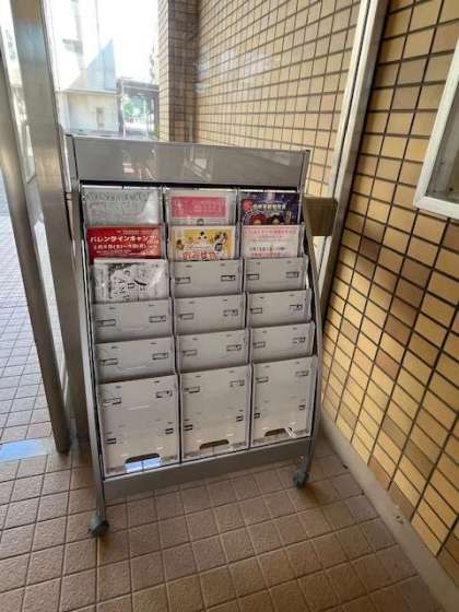 あわせて、通用門側エントランスにレタースタンドを設置いたしましたので、必要なチラシはお持ち帰りいただいても結構です。