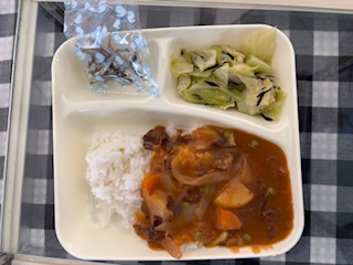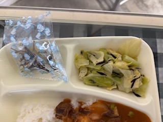 昨日の給食はハヤシライスでした。ミニフィッシュもつきました。