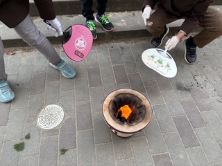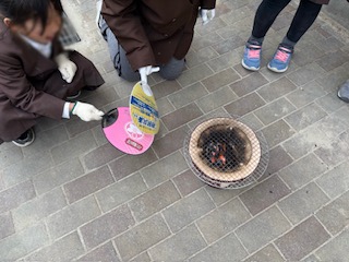 昨日の午後、3年生が七輪体験をしました。一生懸命に火をおこしていますがなかなか大変なようです。