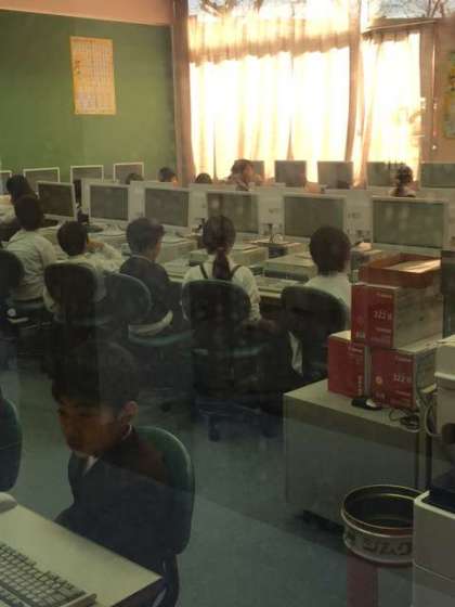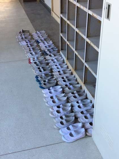 パソコン教室の前を通りかかったら・綺麗に整頓された上靴を見つけました。当たり前の事ですが、気持ち良い思いをしました。教室の中をのぞくと3年生が熱心な授業を受けていました。