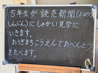 今日は、5年生が読売新聞社に社会見学に行きます。