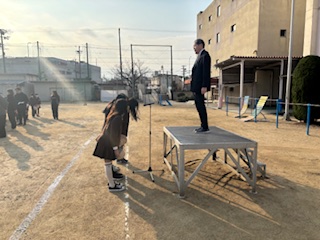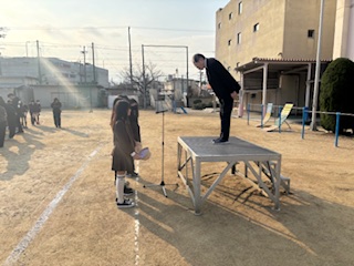 代表委員会の子どもたちが前に出てあいさつの号令をかけます