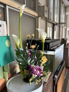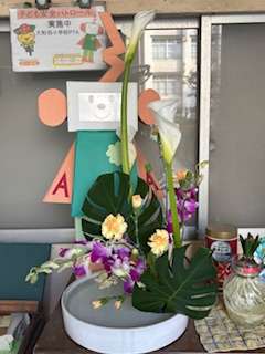 校長室前にお花がいけられていました。生涯学習の皆様、ありがとうございます。