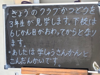 ○今日は3年生がクラブ活動の見学をします。下校は6時間目の後になります。