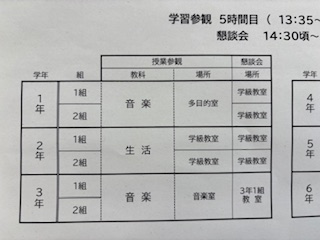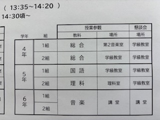 13時35分から学習参観が始まります。入校証をお持ちください。