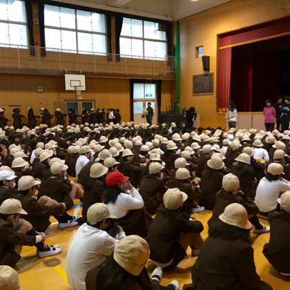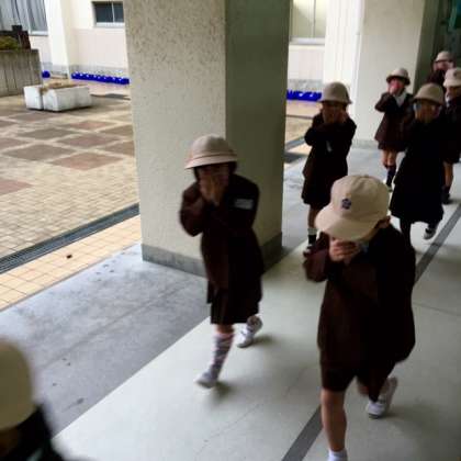 2時間目に「火災」を想定した、避難訓練を行いました。あいにくの天気なので運動場でなく、講堂に避難しました。講堂への避難なので、避難時間は5分54秒と少し多めでしたが、どの児童も整然と避難できました。校長先生からは、昨日の阪神淡路大震災のお話を聞きました。避難訓練係の森先生からは大阪市の火災の状況についてお話を聞きました。