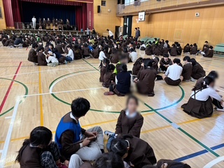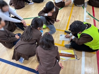 ます目に先生の名前を書いて、委員会の子どもたちが引いた先生の名前を読み上げていきました。