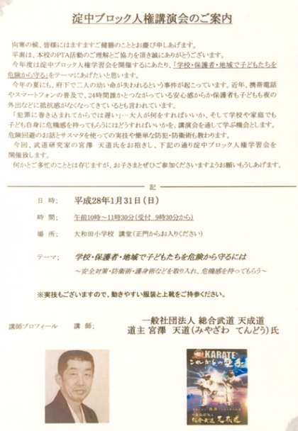 1月31日(日)午前10時より大和田小学校を会場に「淀中ブロック人権講習会」を開催します。