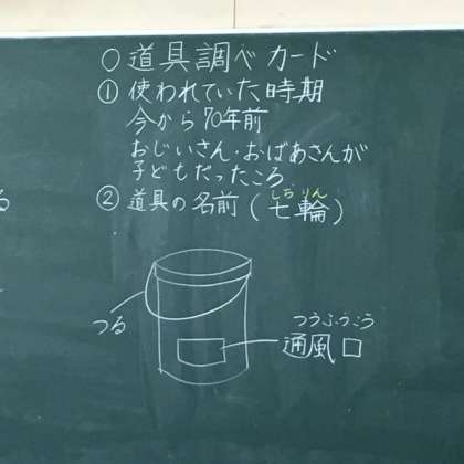 七輪を実際に見ながら学習しています。児童が調べ学習をします。お家で子どもたちから質問がありましたら、ご協力よろしくお願いします。